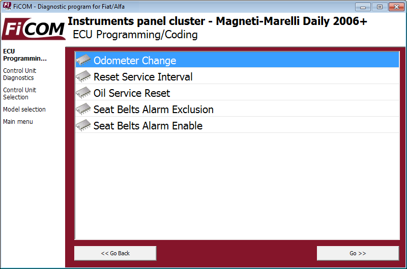 Функцию «Изменение одометра» можно найти в меню «Программирование/кодирование ЭБУ» после подключения к блоку управления приборной панелью.