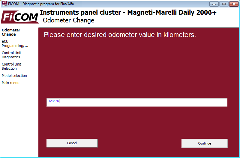 Вам будет предложено ввести желаемое значение (в км), которое вы хотите установить на одометре. Затем нажмите «Продолжить», чтобы завершить операцию кодирования.